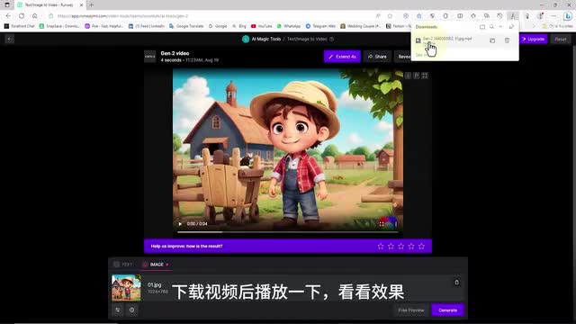 视频将在几秒钟后生成。我们下载文件在计算机上。我单击免费视频下载按钮,下载视频后播放一下,看看效果。还不错,我们可以重复此过程,生成视频,我们返回到上一步。