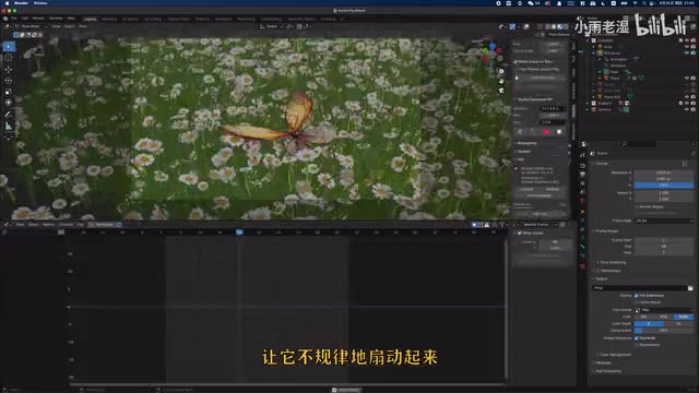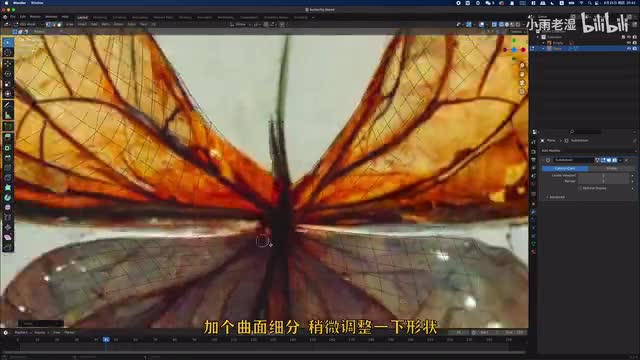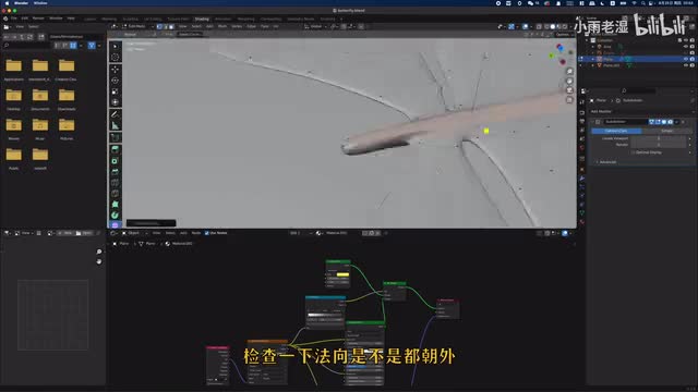 首先把图片拖入blender,在俯视图创成一个四边面,沿着边挤出蝴蝶的形状,加个曲面细分,稍微调整一下形状,再创建一个材质,用a i图片作为贴图,用color rap节点把贴图转换成粗糙度,凹凸图调整u v与贴图重合。