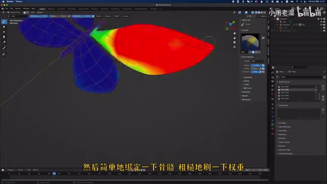 然后简单的绑定一下骨骼粗糙的刷一下权重,让翅膀可以分别动起来。