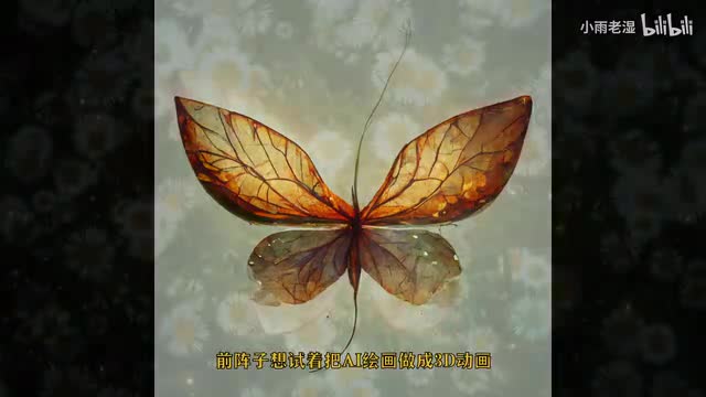 最近ai绘画很火,其实几个月前我就有点迷上了,用mid journey生成了很多图,前阵子想试着把ai绘画做成三d动画,就选了一张比较简单的蝴蝶。