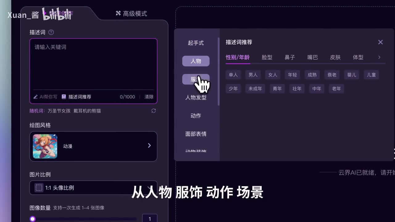 这是我目前用过的最简单的ai绘画工具临界a i打开网站就可以开始玩,不需要梯子,不需要搭环境,不需要付费,还支持中文的关键词。之前大家玩ai绘画最大的难点是不知道怎么写提示词,那它这里有非常丰富的提示词推荐,只需要点击一下描述词推荐,从人物服饰、动作场景甚至面部表情等关键词应有尽有,绘画风格这些它也都给你设置好了。在画廊中看到喜欢的图还可以一键同款,点一下就可以把这个图的描述词,用到的模型参数等都给你同步过来了。