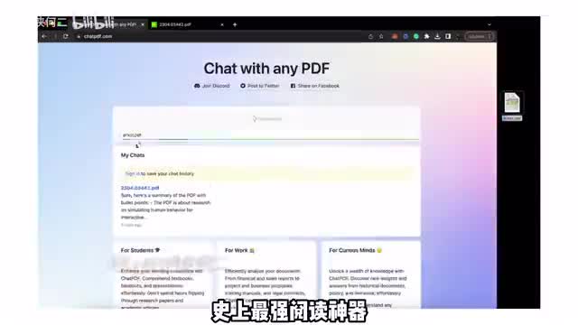 第三个chat p d f史上最强阅读神器,也是目前a i加p d f领域排名第一的工具。
