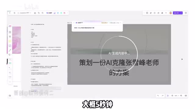 比如让他策划一份a i克隆张雪峰老师的方案,选一种界面风格,大概五秒钟a i就会自动帮我们生成一份精美的p p t。