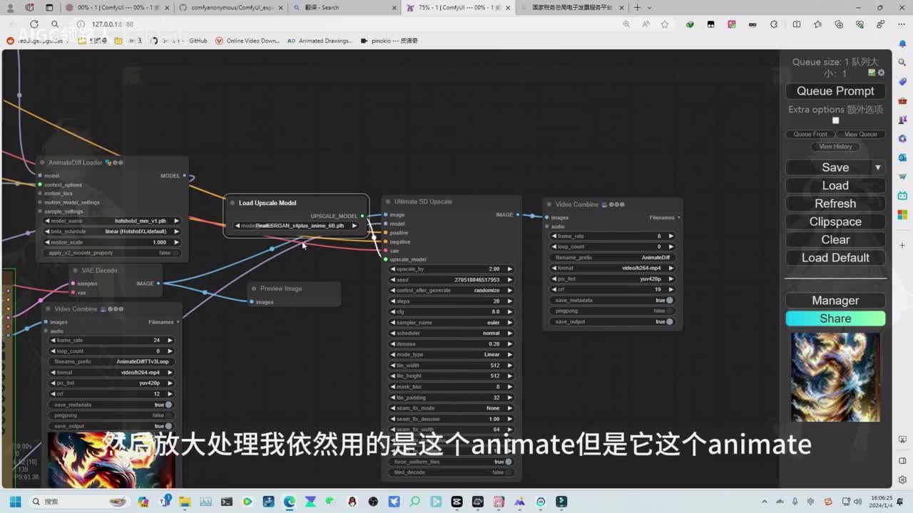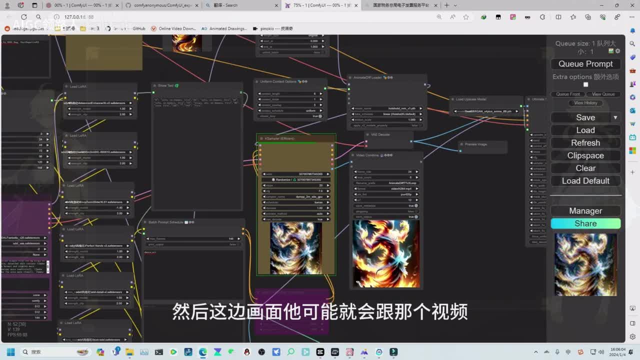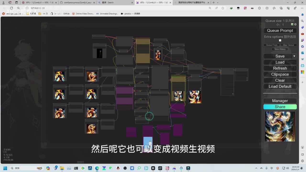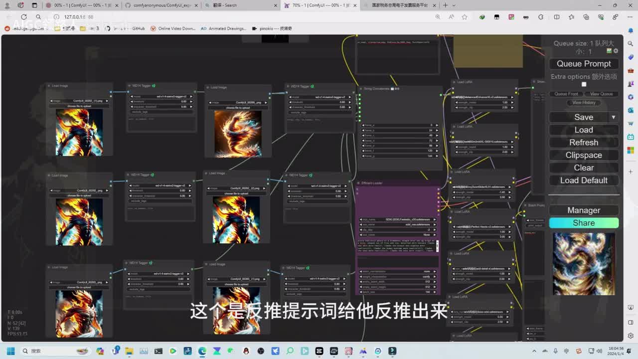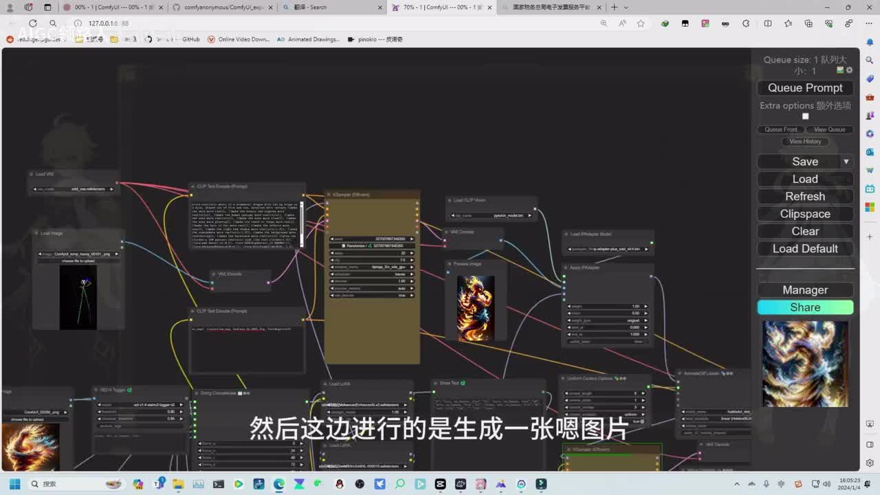 嗯,然后这边是首先第一步这边的反推嘛,反推完了之后呢,就是嗯到这边来这边啊就到这边这边是i p然后这边进行的是生成一张嗯图片,然后控制你这个整个画面的一个效果。我嗯然后你看我是生成了一张这个图片,所以。
