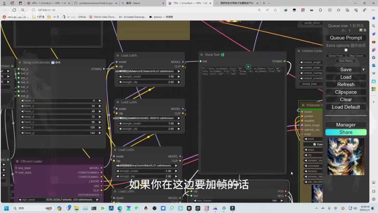 然后这边这么多张图片呢是跟这个有关的,就是零二十四帧嘛,就是控制每一段增速的画面的变化。这个是反推题,一次给它反推出出来,然后再控制这个嗯每多少帧的变化。