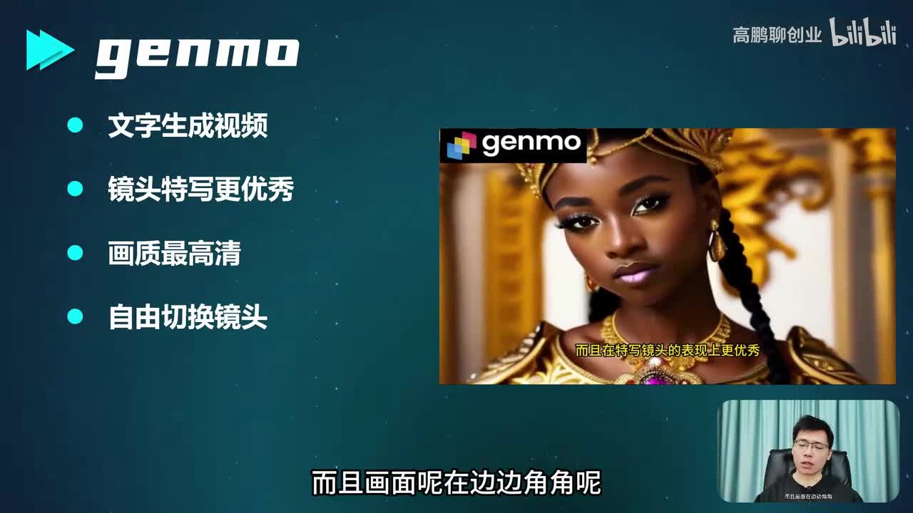 所以如果你不想像我一样坐在镜头前面,每一个稿子都自己去读。那么你可以用它上传一张图片,让它帮你生成一个视频,作为口播的替代方案,是非常不错的一个选择。这个工具呢也是不用安装啊,直接网页访问就可以使用。第四个呢是genmo,这个工具最大特点呢就是它只支持文字生成视频。