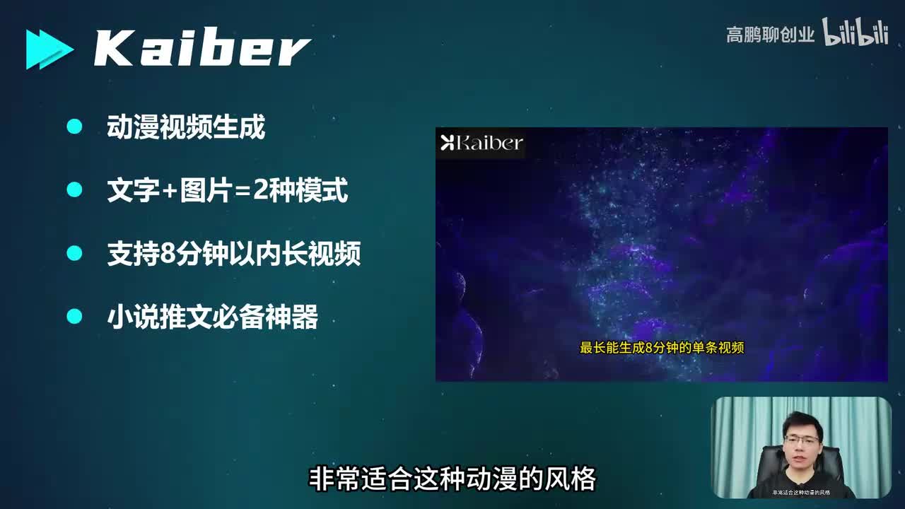 第五个呢是kaiber,这个a i视频工具啊,就跟前面不一样了啊,这个主打的呢是动漫的视频生成。现在的话也是支持两种模式啊,一种的话就是文字生成视频,另外一种的话呢就是图片生成视频。另外一个优势就是它可以生成长达八分钟的视频。所以很多做小说推文的作者呢都非常喜欢这个工具。