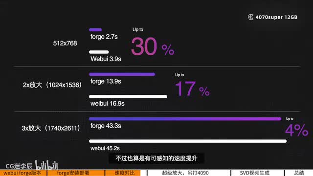 在高分辨率下forge的速度优势就没那么明显了,不过也算是有可感知的速度提升。对于性能相对差点的显卡。提升速度会更加的明显。