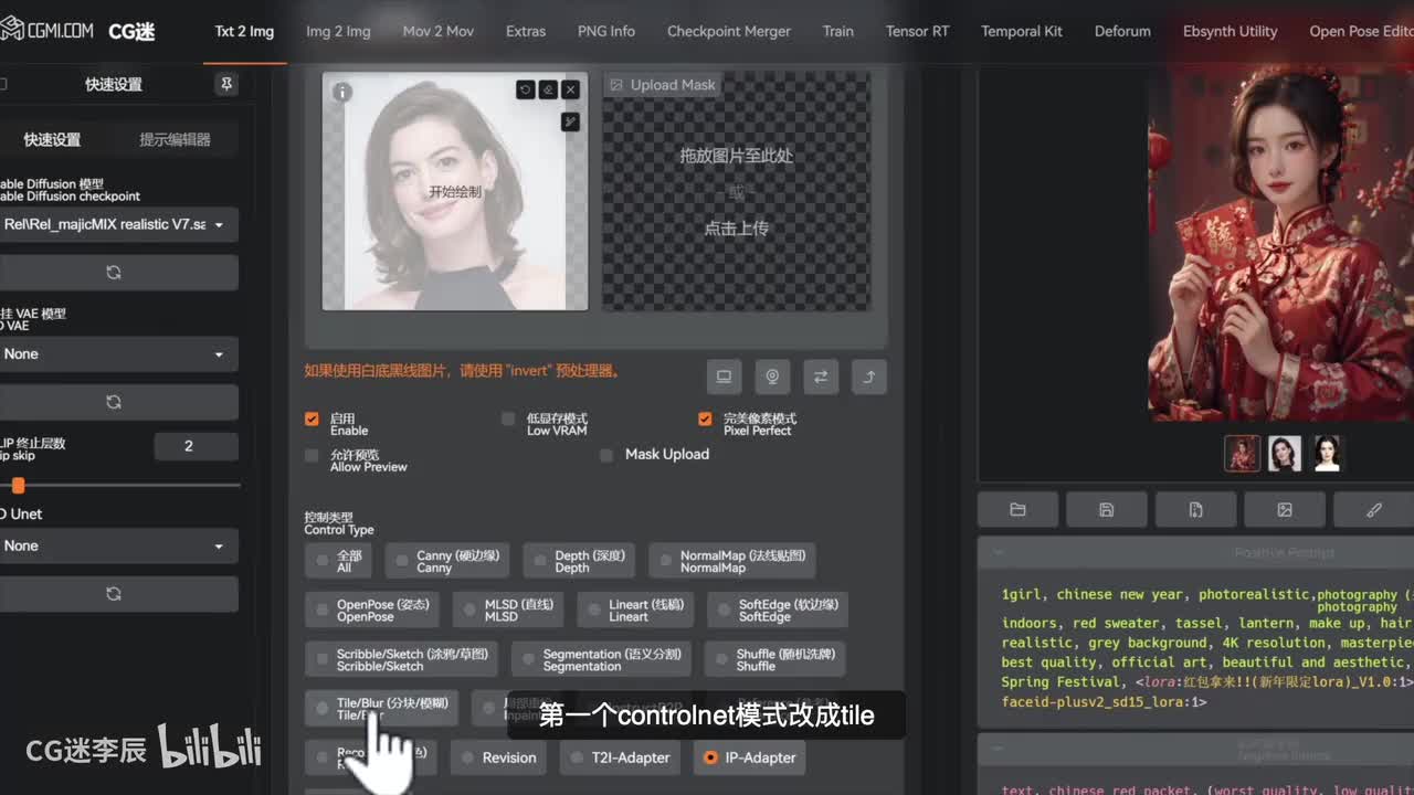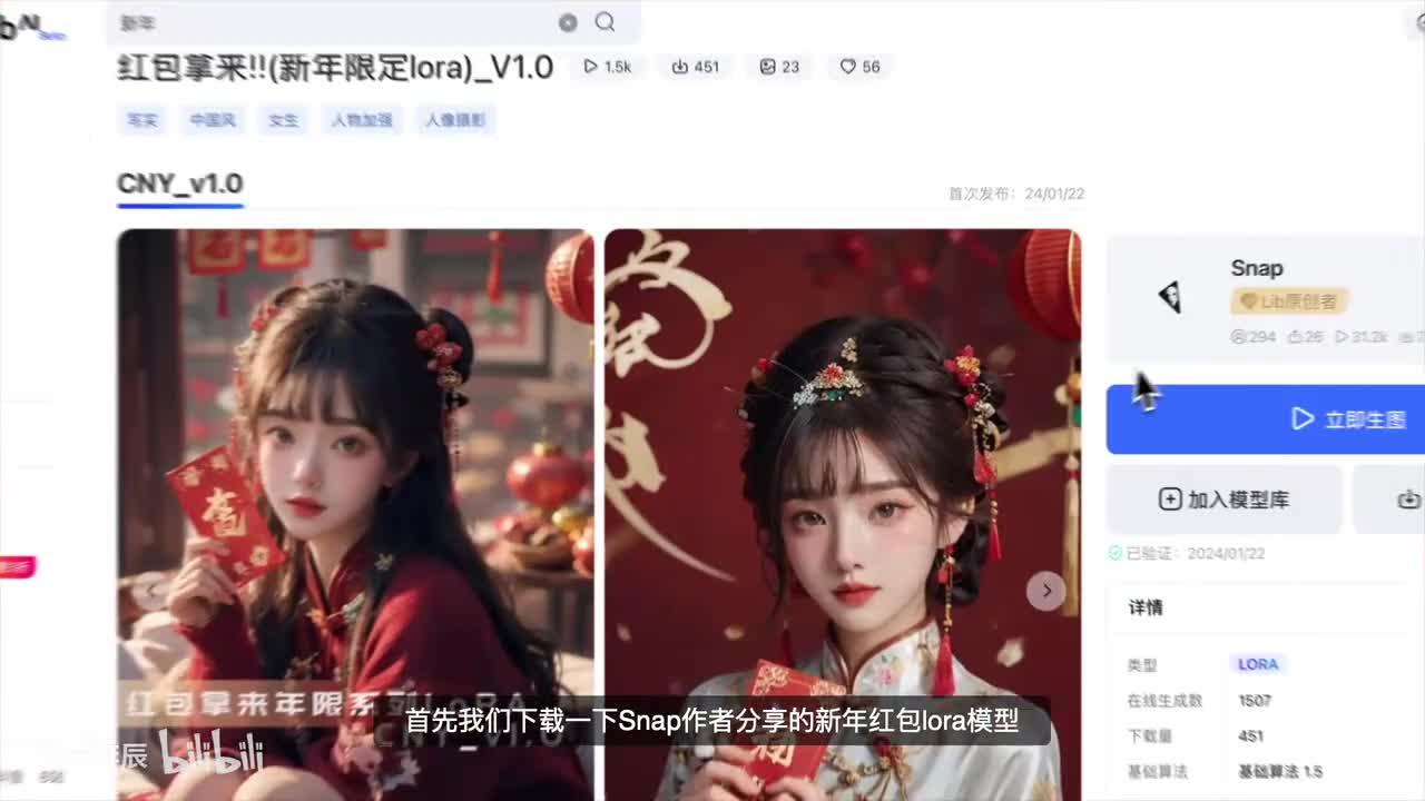 新年不用买新衣服,不用到写真馆,一分钟教会大家制作这种美美的龙年专属红包头像。首先我们下载一下slap作者分享的新年红包lava模型,然后进入stable division大模型,选择卖g v七,填入这样的提示词,同时加上刚刚下载的红包laura和ipad data face i d v r。