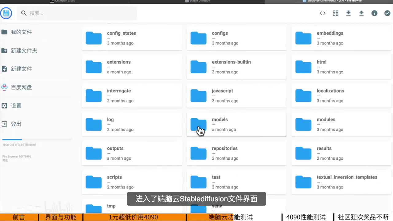 对于进阶用户可以自行扩充插件和模型是必不可少的环节。我们可以点击文件管理,进入端脑云stable division文件界面,点击attention可以手动把。把需要的插件直接拖进来,这里我把放大插件挑division拖进来,很快就传输完毕了。