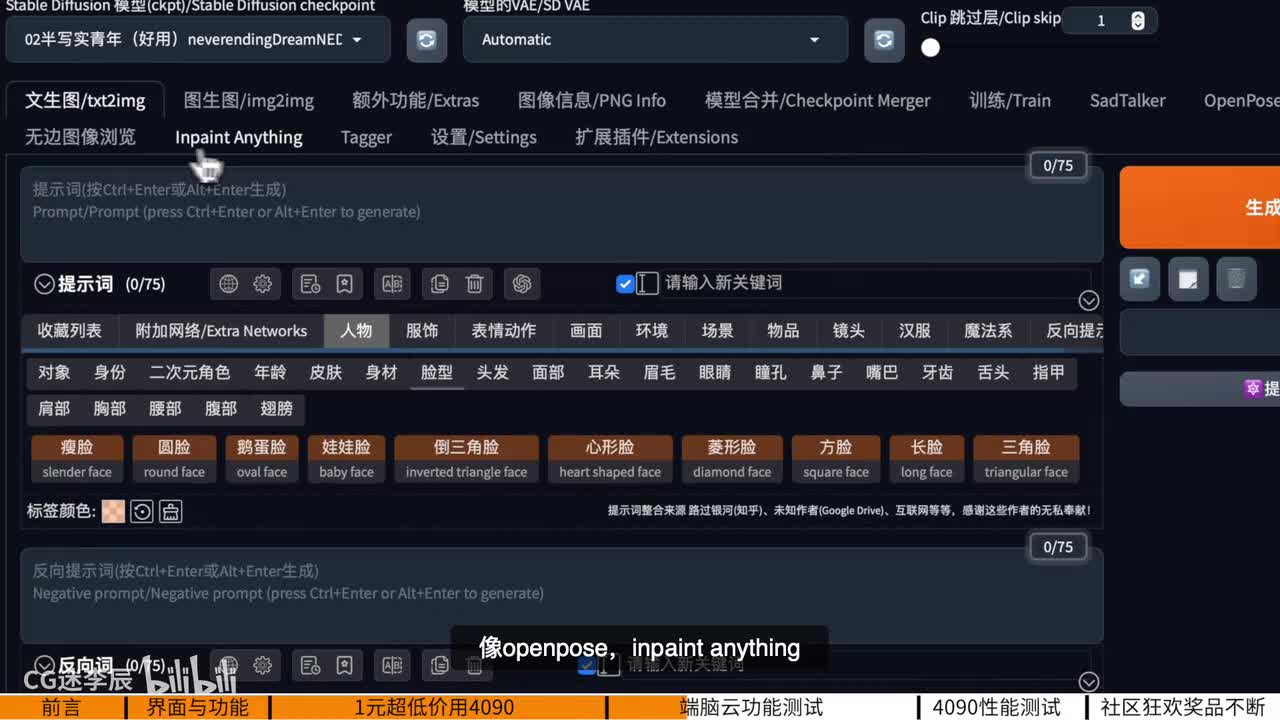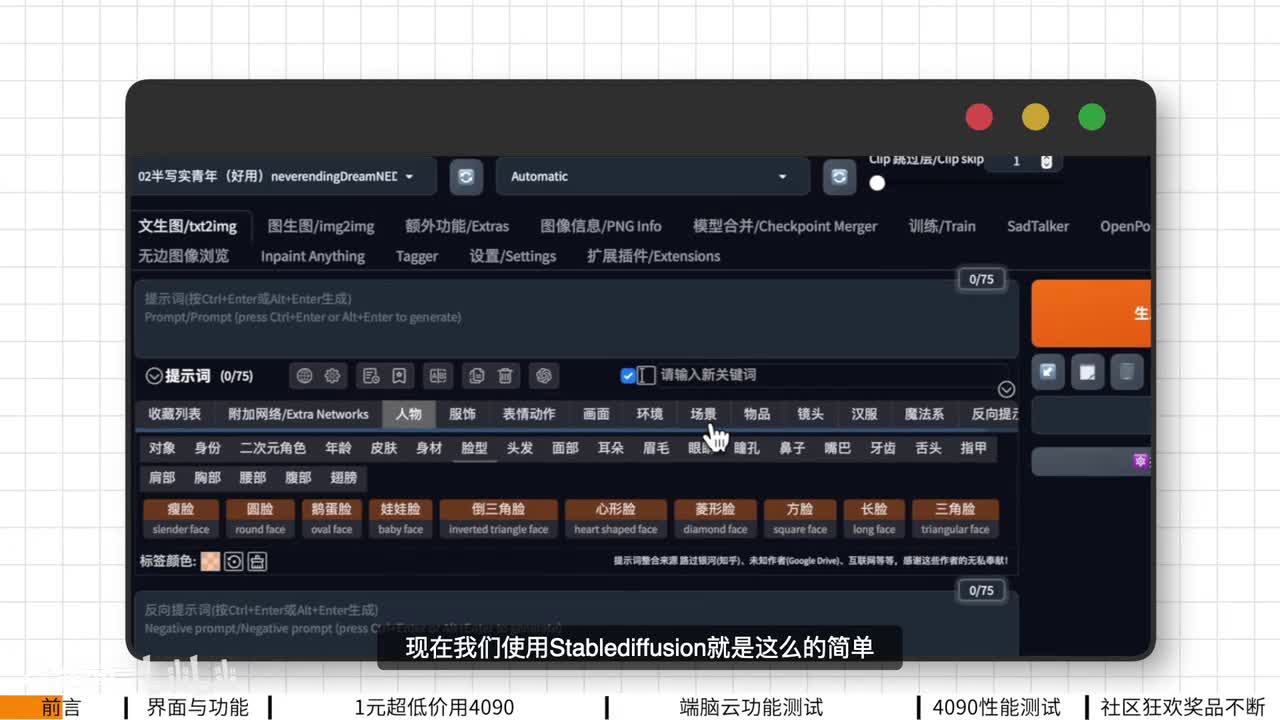 后点击立即使用,等待服务器启动。点击这里进入stable diffusion面包车进入的时候需要填入这里面的到的账号和密码,可以看到大脑云配备的原生stable division web u i,并且已经安装好一系列非常多的插件,像open post in pain anything提示式插件。并预置了二十多款模型的一系列的的va包括常用的a d teller controller、rop换脸插件、漫画助手一应俱全,免去了我们复杂麻烦的部署步骤,真正做到了开箱即用。