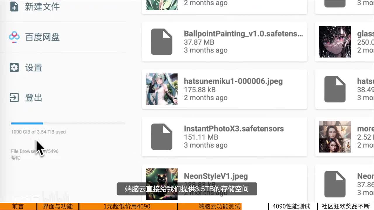 我们进入models文件夹,找到nova文件夹,点击打开上传一个国潮风插画loa进来,可以看到传输速度在四至六m b每秒,传输速度还是相当不错的。端点云直接给到我们三点五个t b的储存空间,各种插件模型可以随意存放了。除了直接上传端,鸟云还提供百度网盘同步传输的方式,把自己的百度网盘授权码填到这里,就可以同步百度网盘文件进来了。
