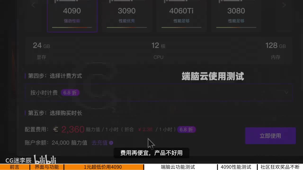 如果按每天使用一个小时的频率来算,那么一百元我们可以用上四个多月的时间。四零九零的这个抄底价目前找不到第二家了,费用再便宜,产品不好,一切都是白搭。那么接下来我们就看看端到云stable division到底如何选择显卡和计费方式。