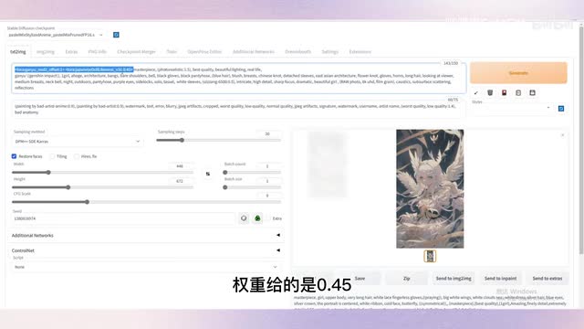 内容就是我们下载的甘雨laura模型,权重给的是一。此外它还添加了另一个laura模型,japanese lateness, 权重给的是零点四五。这个lura是要下载的,这里就不演示了。我把这两个laura删掉,下面演示一下如何手动添加。