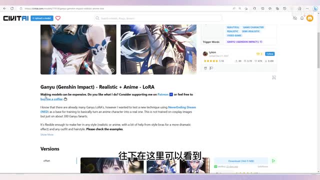 所以选择正确的v a e模型是很重要的,现在我们就可以在这个基础上局部修改。誓词进行绘图了,下面我们再找一个laura模型试试看。我们在搜索框中输入laura,找到一个自己喜欢的laura模型,我们试试这个,这是原神中甘雨的人物,laura模型有写实风和动漫风两种。点击下载模型。