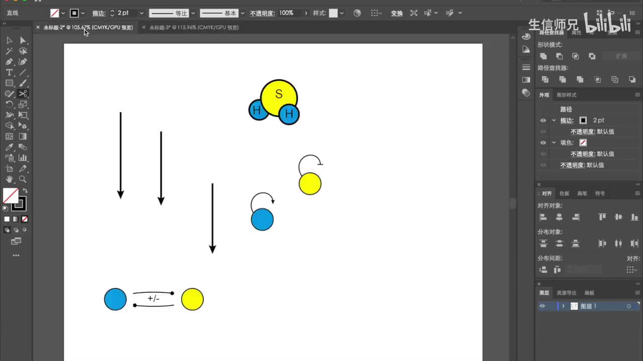 从这节课开始我们来讲一下adobe lustra or这一款绘图软件从入门到精通的一个教学视频。也就是a i这款软件的基本教学。然后我这一系列课程呢用到的教材是这个生命科学插图从入门到精通这本书。这本书讲的非常好,也非常简单易学,所以特别适合这个初学者入门。如果想要获得这本书电子版p d f的同学,可以私信一下,可以私信up主,然后我就可以把这个免费分享给你。我们第一节课呢首先介绍一下n a这个软件的基本的界面,以及它的一些个简单工具的使用。我们这节课可能会讲到直线工具的使用,以及箭头的绘制,以及如何快速实现复制和对齐。然后椭圆工具的使用,以及椭圆的描边,以及色彩填充的设置。然后螺旋线工具的使用。如何绘制一个曲线的箭头?然后呢,还会讲到一些循环线路的无限复制。弧线的一个绘制,还有剪刀工具的一个使用。