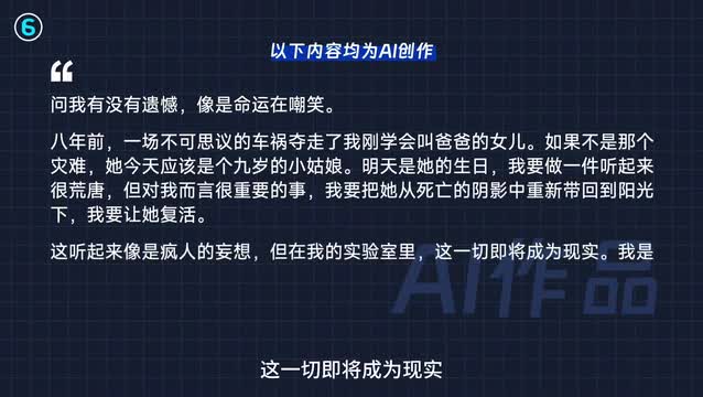 我要做一件听起来很荒唐,但对我而言很重要的事儿。我要把它从死亡的阴影中重新带回到阳光下,我要让她复活。这听起来像是疯人的妄想,但在我的实验室里,这一切即将成为现实。我是个研究员,但不是被限定在科学框架中的那种,我所追求的这种超越科学的魔幻逆转时间怎么样?你能看出来这是a i写的吗?今天就要教会你零基础用a i写小说,一共七个步骤,学会了你也能写。