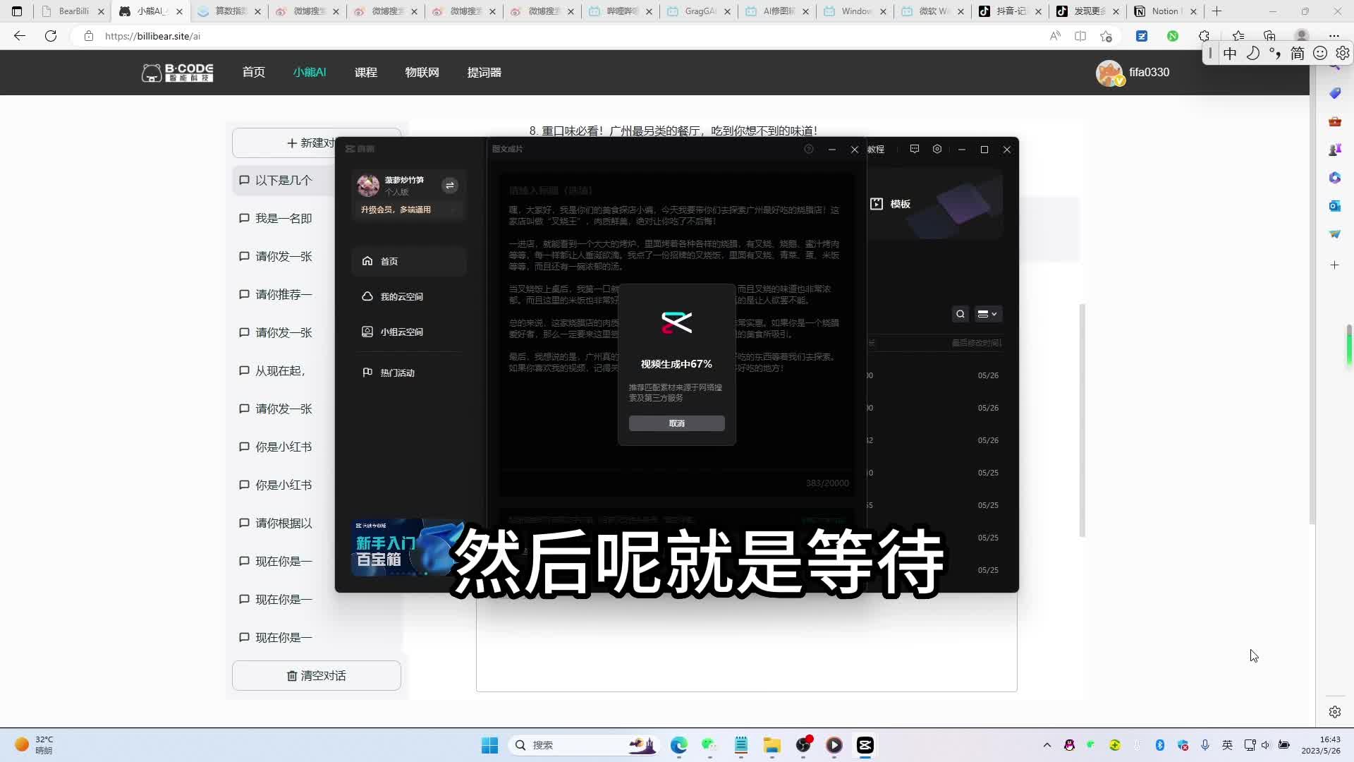 找不到入口的人可以私信我,我来帮你解答。那么点击确定,然后呢就是等待。一般呢用不了几秒钟就会生成一个视频。