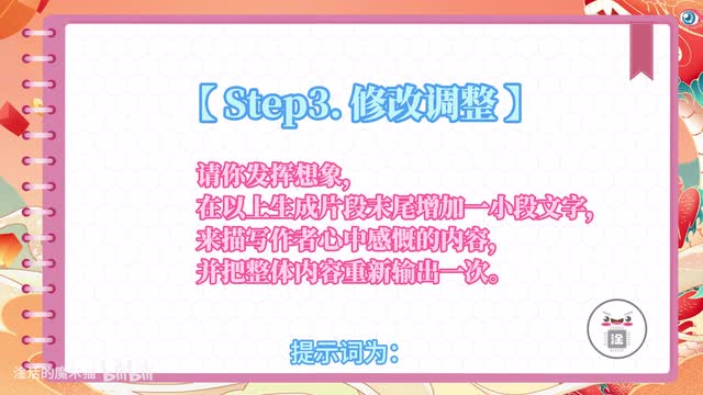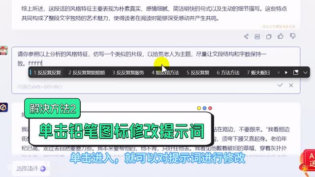 第二,如果反复重新生成仍不满意。可以把鼠标悬停到本条提示词右侧。会显示出一个铅笔图标,单击进入就可以对提示词进行修改。修改完成后单击对勾按钮,文心一言也会根据新的提示词重新生成。如果这两个方法都不满意。