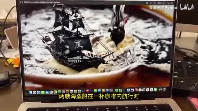 来看一段提示词声称的逼真结果,两艘海盗船在一杯咖啡内航行时互相战斗的逼真特技视频。