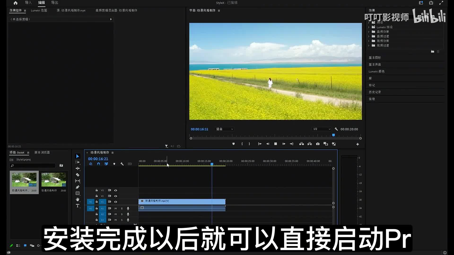 我们将style x插件安装完成以后,就可以直接启动p二,将需要制作动画效果的视频导入到p二的时间线中。