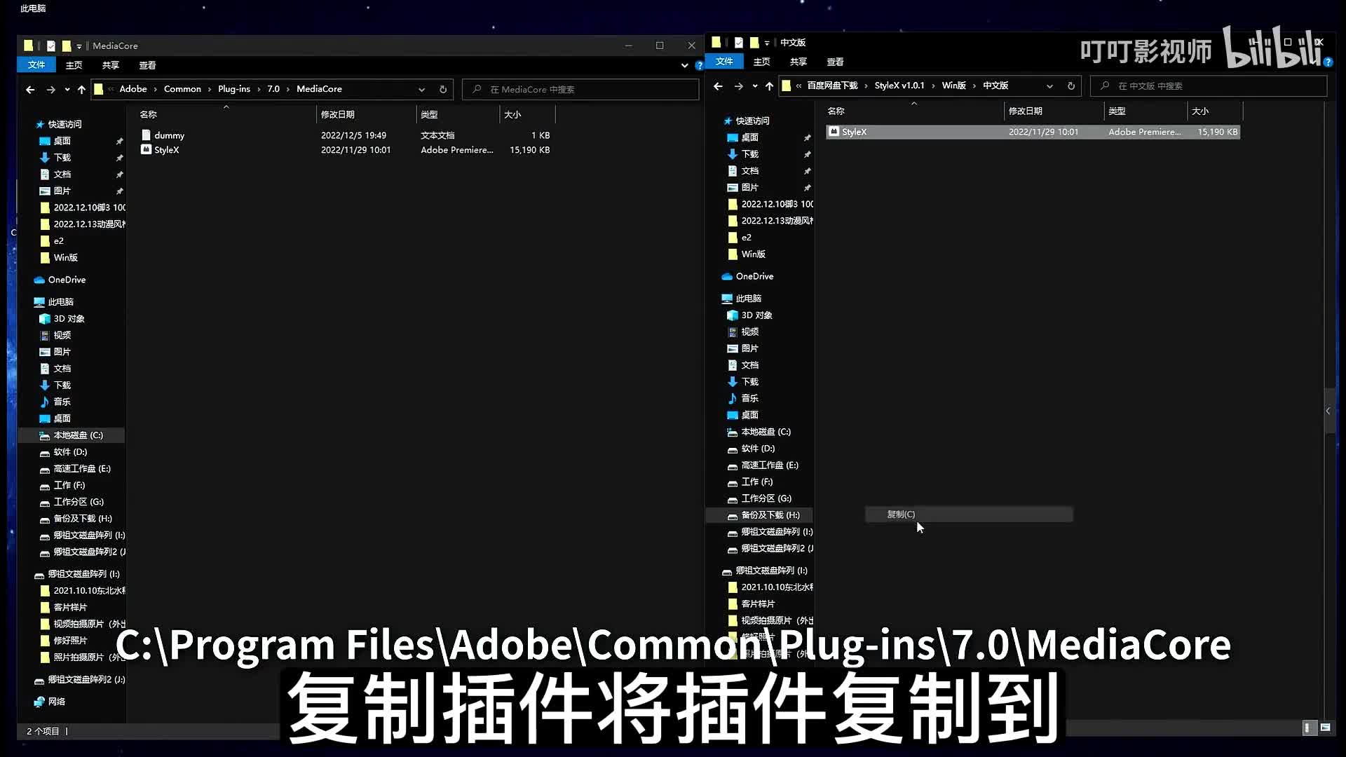 插件的安装下载好以后,点击进入win这个文件夹,复制插件,将插件复制到c盘下方的这个位置,直接粘贴到media core这个文件夹下。