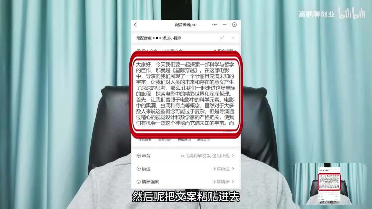 这个要求呢也告诉a i,那么他很快就能给你答案。接下来呢我们有了文案之后,来到这个配音工具里边,然后呢把文案粘贴进去,选择呢咱们自己喜欢的这个主播的风格。比如说呢我这儿选的是云飞,然后呢在下边呢你还能调整他的这个语速啊、语气。