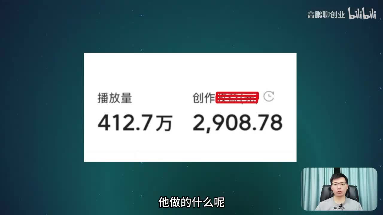 这是我们一个圈友给我发的视频的后台截图。单条作品啊跑了四百多万的播放,拿到了二九零八。他做的什么呢?哎,就是大家熟知的影视解说,虽然是个老牌赛道,但是啊依然有很多人做的非常香。