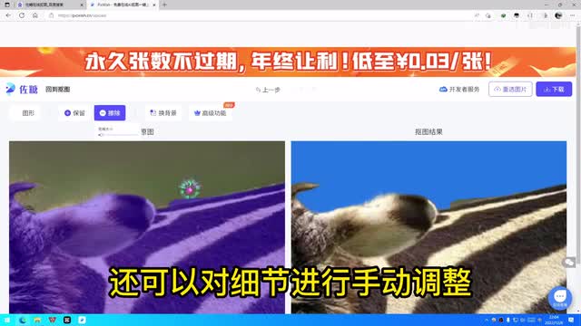 如果对抠图结果不太满意,还可以对细节进行手动调整。