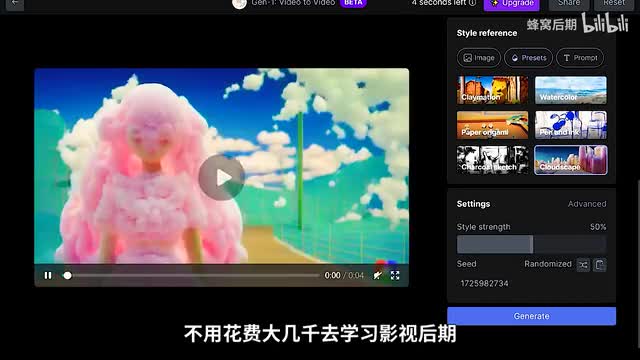 然后把文字导入到a r绘画工具里,调整下文案中的关键词,选择动画类的质感。然后人工智能啊根据你的内容自动生成一段图片视频。