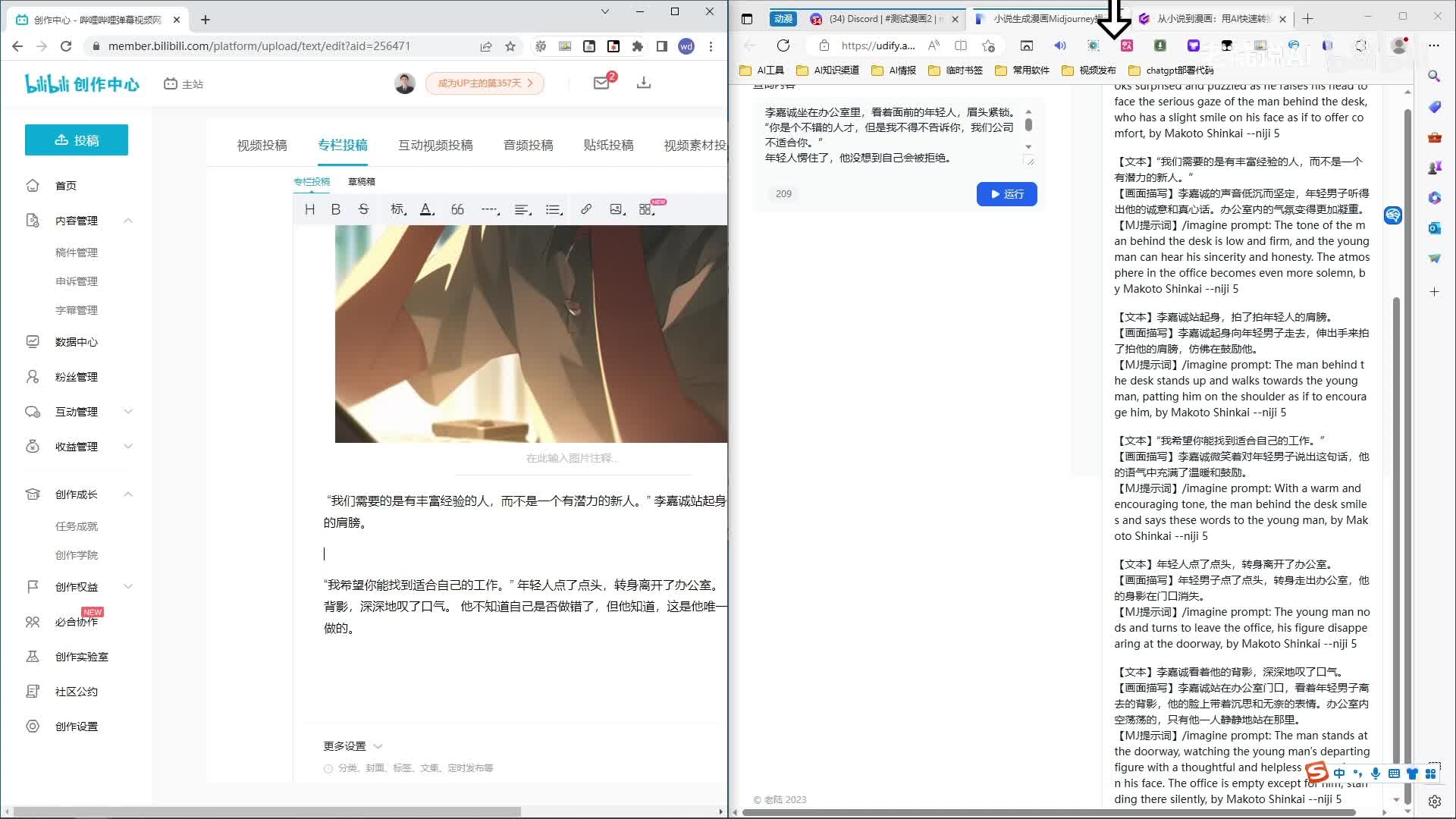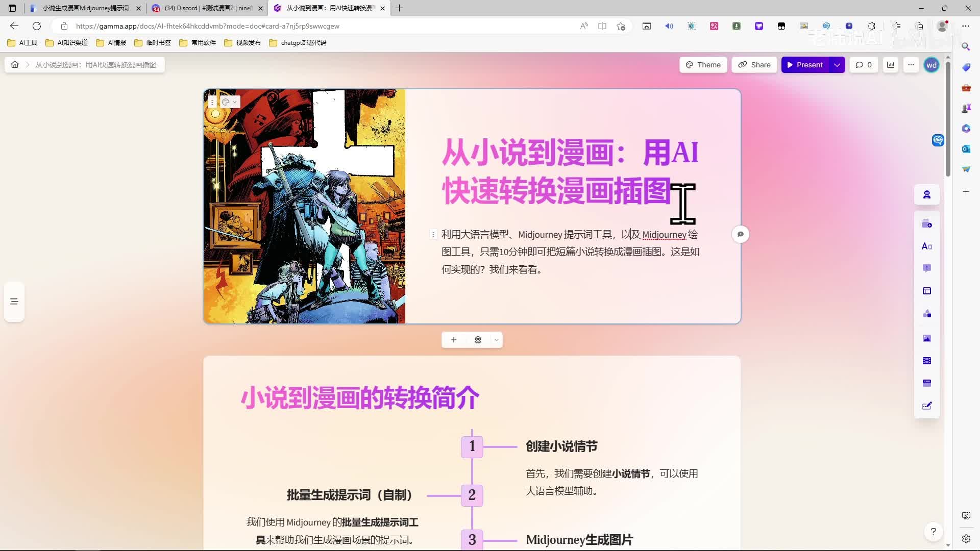 大家好,我是老陆,b站终于有流量了,感谢粉丝们的支持和b站的推流,我发现认真拍没啥流量,随便录录屏流量还不错啊。那今天再来分享一下,如何用ai工具,十分钟之内把小说快速转化成漫画插图。看一下这个p p t。首先我们用大元模型辅助我们创建小说情节,或者是原来有的小说也行。然后我们用major or提示词工具,这个是自己写的,然后批量生成一下场景。