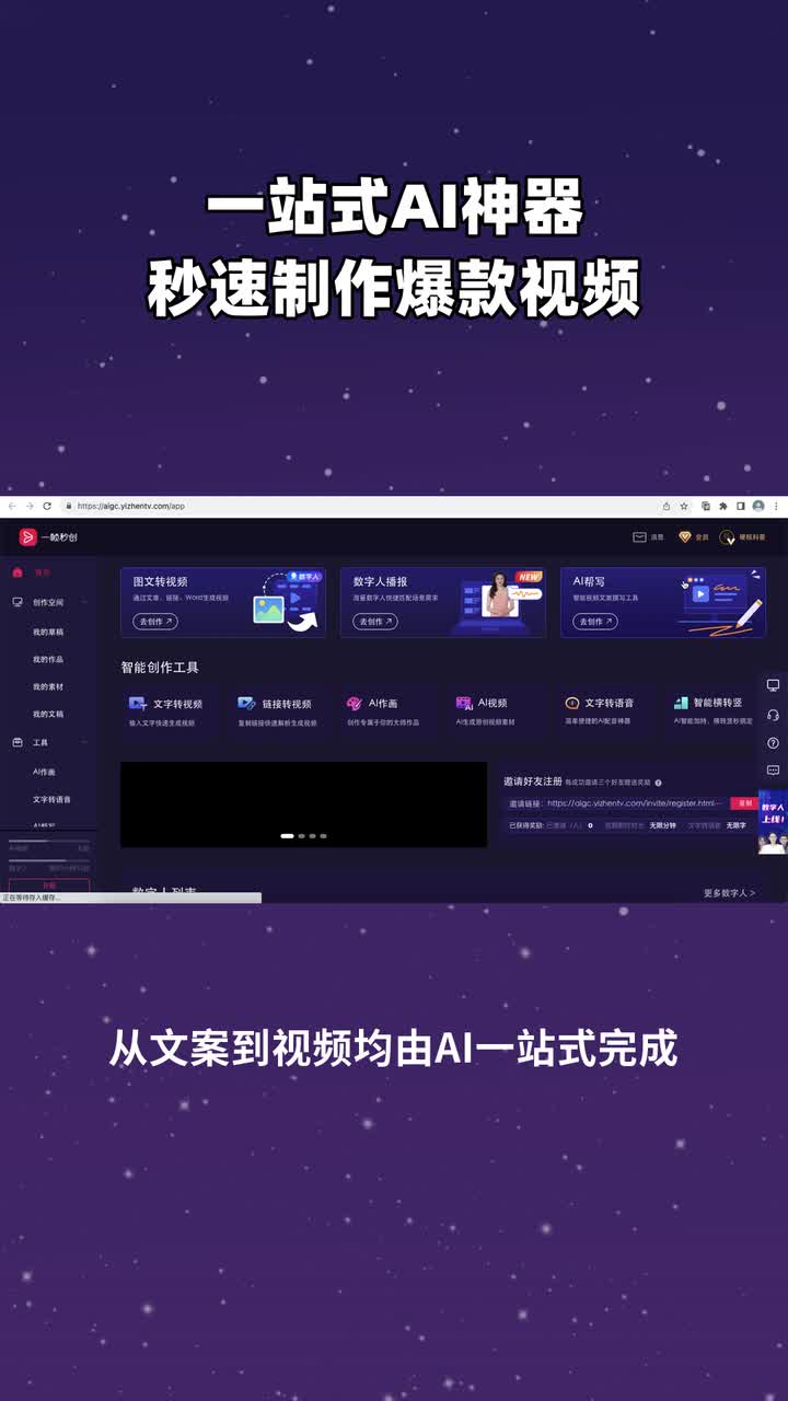 自媒体人必备的一款ai神器,这个网站叫秒创,从文案到视频均由a i一站式完成,仅需十秒就能制作出一个爆款视频。