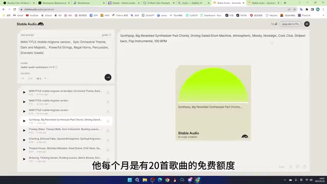 cable audio是根据提示来生成歌曲的。他每个月是有二十首歌曲的免费额度。歌曲最长的长度是四十五秒。