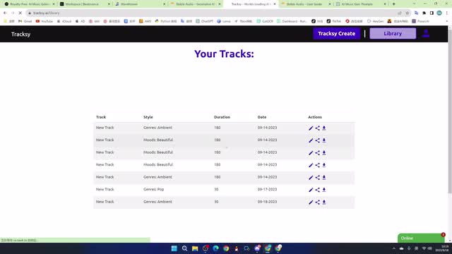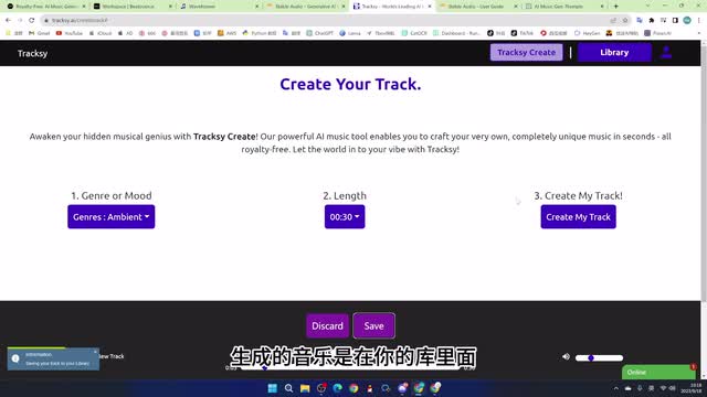 要对效果满意的话,可以保存下来。然后你所有的生成的音乐是在你的库里面。在这里,你可以下载你所生成的音乐。