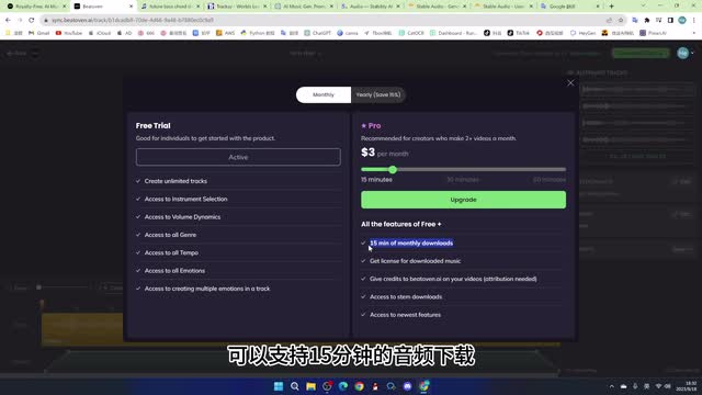 你要是下载的话,必须得加入他的会员,每个月是三美金,可以支持十五分钟的音频下载,看个人需要了。好了,本期视频就为大家介绍到这里,我们下期再见。