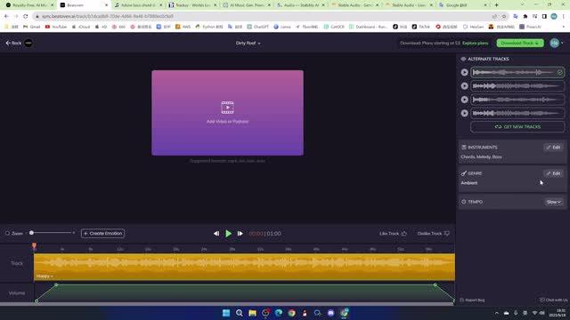 要是满意可以直接下载这里,也可以对提示词进行修改,然后重新生成。如果想要一些长音乐,可以利用这个网站bea tov。它最长可以生成一个十五分钟的音乐。