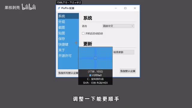 在截图时的自动区域选择,你也可以用鼠标滚轮来选择窗口边界区域,这个功能用起来还是挺舒服的,设置里面可以调整快捷键和文本检测等配置,调整一下更顺手。因为在截图的时候按住table键,可以快速在元素选择和窗口选择之间切换。因为是新出的软件,在使用的时候可能会遇到一些小问题。
