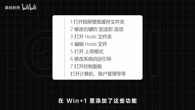 除了这两个基本的功能,在温加g分类里面还能添加下面这些功能。上面这些也还只是软件了一小部分功能。接下来在win加一的快捷键里增加了一些对于系统。