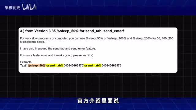 按下table键和回车键可以使用i m键后面跟上图片地址来添加,以及这些替代符可以模拟按键。官方介绍里面说,对于非常慢的程序或计算机,可以使用命令来进行毫秒级别的等待。对于选中的文本软件还可以快速替换其中的内容。