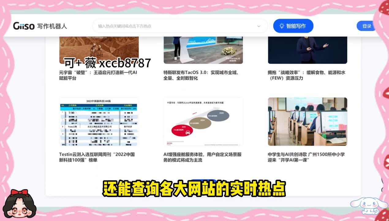 提供热点写作、汽车写作、提纲写作、财经快报等多种类型的写作任务。那除此之外呢,还能查询各大网站的实时热点,帮助我们第一时间根据热点生成我们的报文。那第三个呀就是文案狗。只需要输入一个字就能够生成这个字的谐音案例。