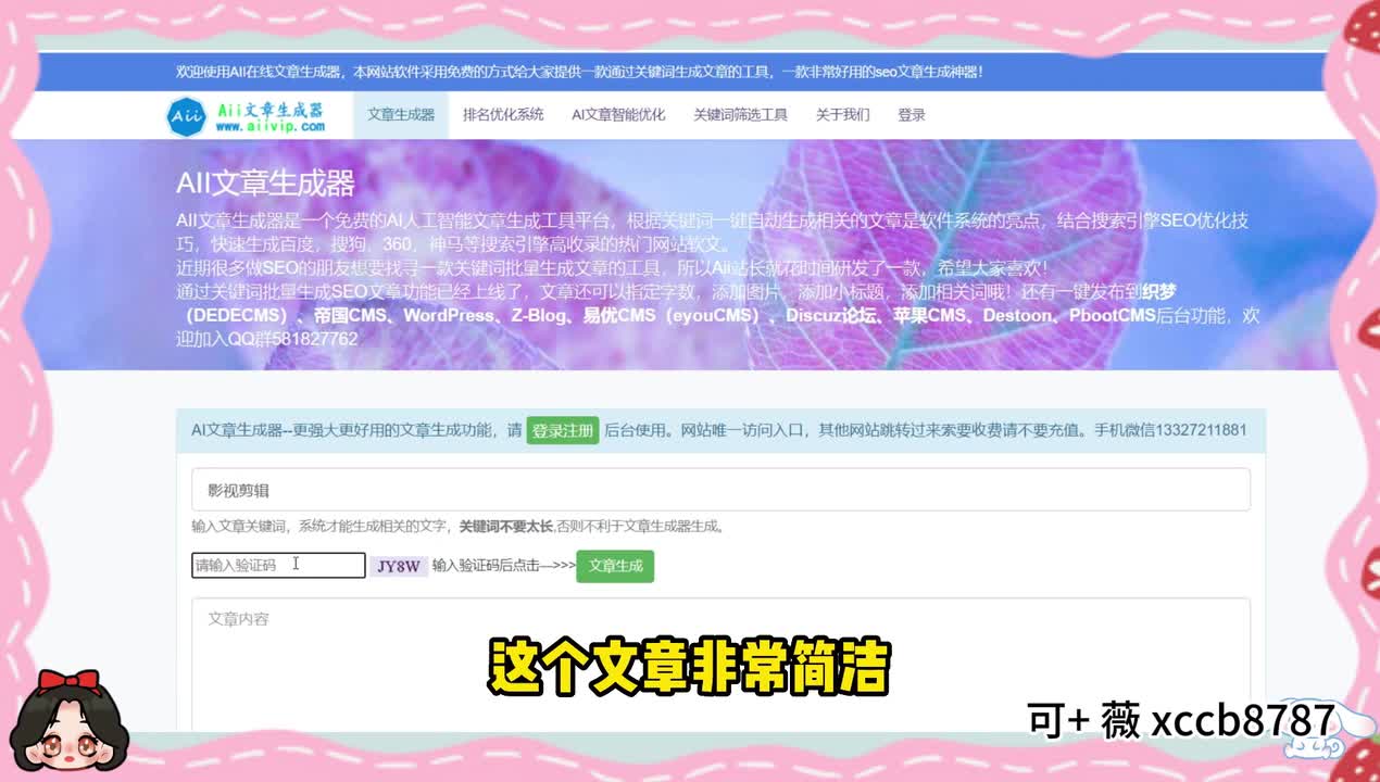 只要输入关键词,网站呢就能自动识别该词语的韵脚,生成押韵的句子。第八个呀就是ai文章生成器,这个文章呢非常的简洁,只需要输入关键词就能够生成文章。系统自动生成文章,前后通顺,逻辑清晰,写不出文案的时候呢是可以参考的。