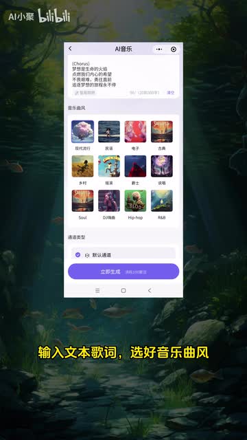 输入文本歌词,选好音乐曲风,两首好听的原创歌曲分分钟get soon。