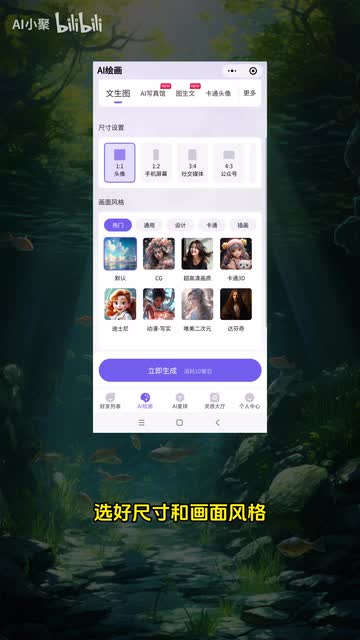 二、ai绘画只需要想好一段描述词,甚至不用想直接点智能联想,选好尺寸和画面风格,就能生成令人惊艳的图片。