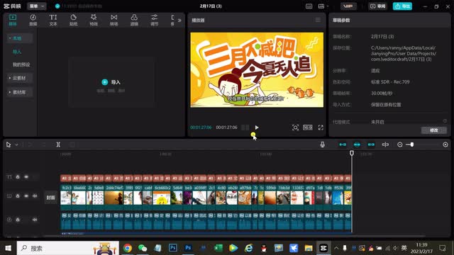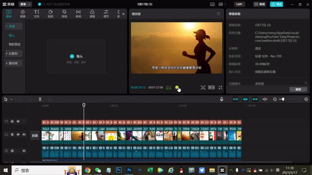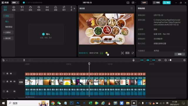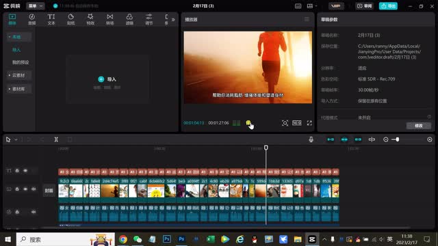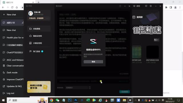 然后点生成视频就可以自动生成视频了。这里我们用十倍速加速生成过程。在剪映里面就自动生成出视频了,点击播放按钮可以查看生成的视频效果。