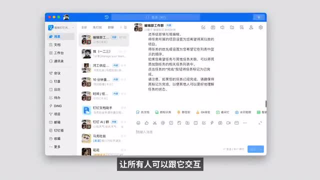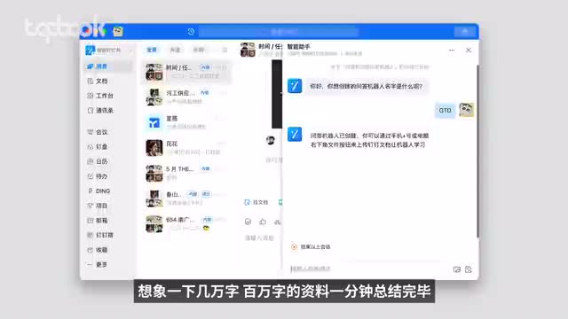 第二,每次都要输入大量的提示词,甚至给它一个具体的身份和性格。否则,他只会泛泛而谈,听君一席话,胜儒一席话。而把喂养成功的机器人直接放到群里,让所有人可以跟他交互,则因为a i生成的a i更像一个专业模型,更接近人类同事,跟他们聊更有效。这些大概就是拿到钉钉斜杠之后我所看到的东西。很明显,这并不是完全体。