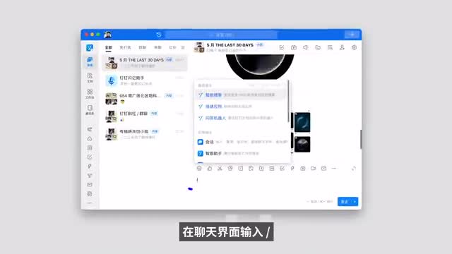 相比之下,我觉得a i可以做到的第二三件事情更值得关注,因为它看起来又炫酷又恐怖。钉钉斜杠居然开始公开邀测了,淘book也第一时间拿到了资格。目前来说我们大概能在这些地方找到a i的能力。在聊天界面输入斜杠或者选择这里的斜杠符号,在文档当中输入斜杠,control加斜杠,或者在菜单栏选择斜杠符号。在会议当中,四月的发布会上有展示是在聊天位置输入斜杠,但目前应该还没有上,不过带来了更强悍的回扣。