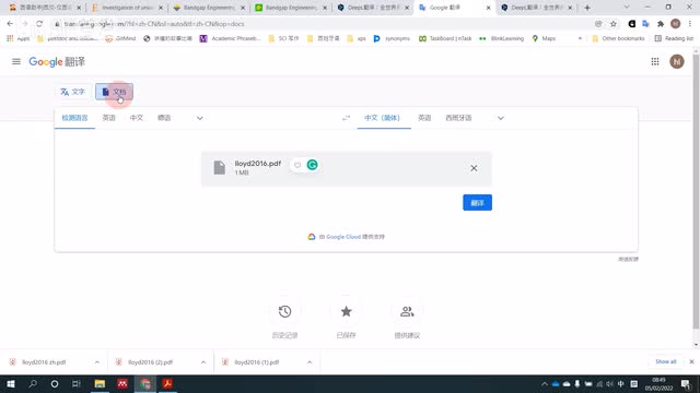 google翻译通常呢大家常用的就复制粘贴,对吧?把这个文献的内容粘贴到这里面。其实呢这里面有一个文档,点击文档之后呢,我们就可以点击浏览器计算机对吧?然后我们可以上传,比如说我们上传这篇文献。