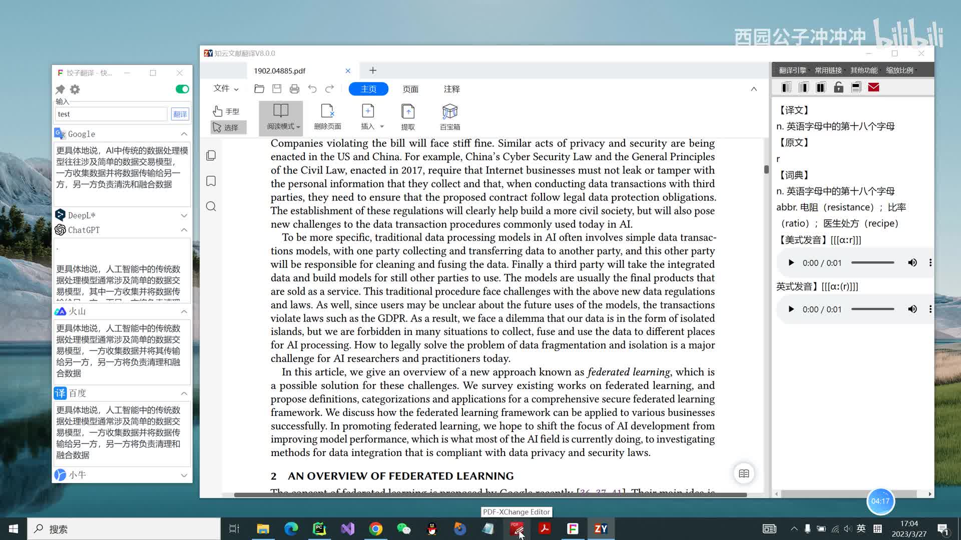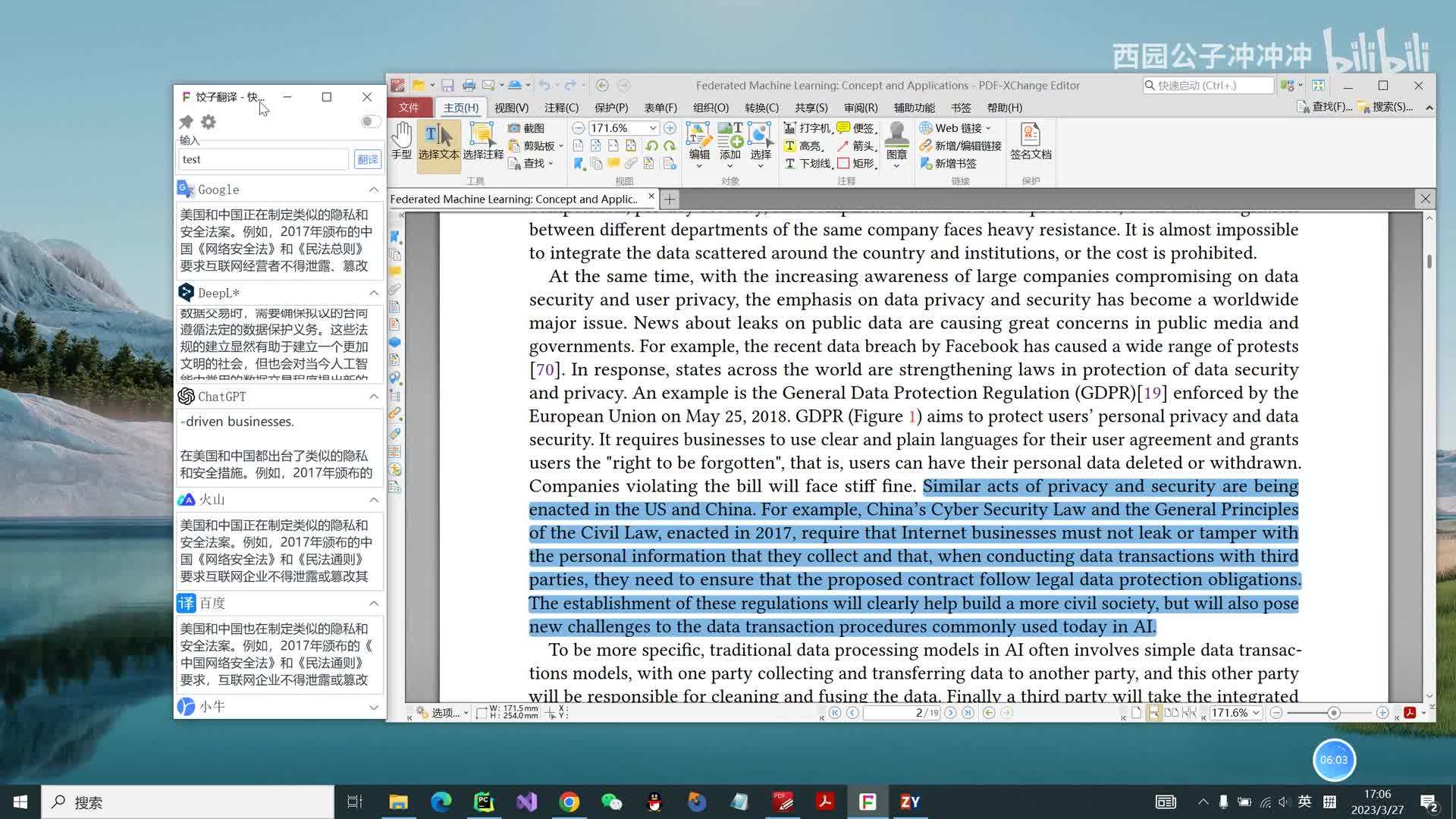 嗯,如果就是只需要这些翻译的话,我觉得完全没有必要像这个软件就是个。呃,p d f x change这个editor这个软件真的我觉得是目前来说。也算很好的了。
