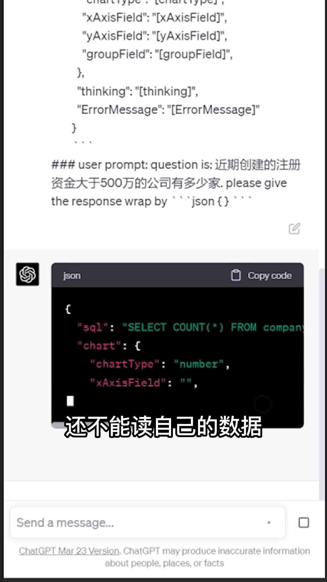 这是一个普通的chat g p t,我们想把自己的数据喂给它,需要反复的调教,还不能读自己的数据。这是封装了g p t模型的chat b i,能连接上自己的数据库或导入excel。