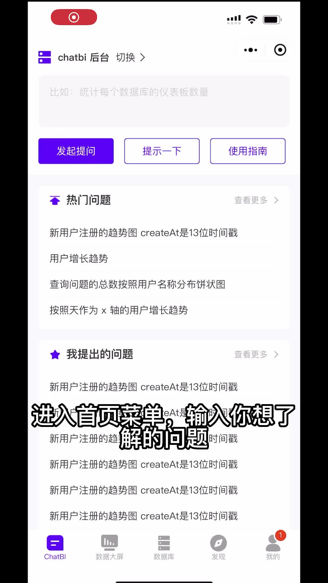 以下是一些常见问题,问题一,我的数据会被模型影响吗?不会,我们仅进行了自然语言转化s q l并在你的数据库执行查询,而且只有查询权限,不会对原来的数据进行修改。问题二,问问题的维度有哪些?该怎么提问?chat b i只会处理和回答跟数据有关的问题,你可以像跟普通人说话一样,问他一些数据问题。